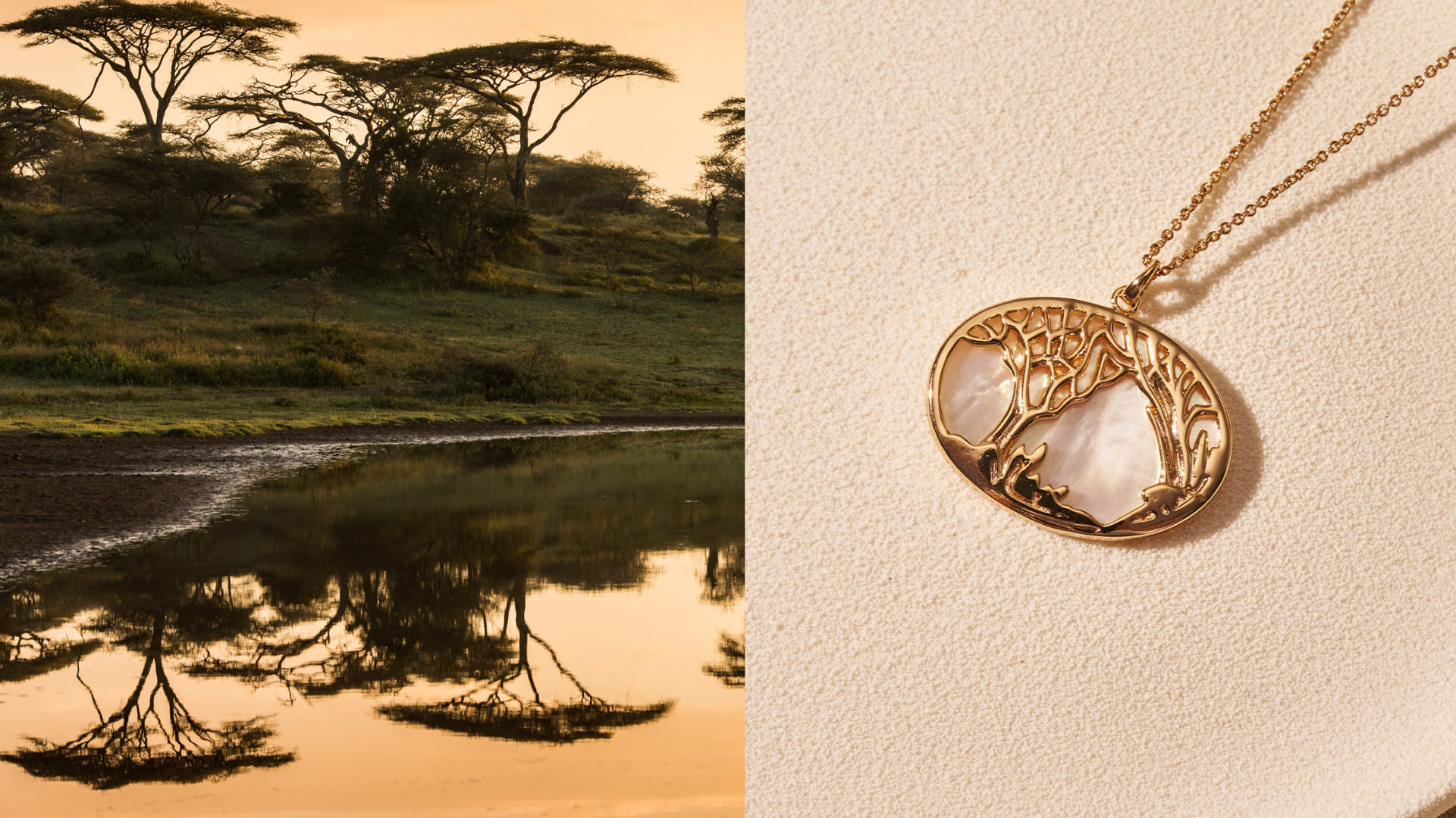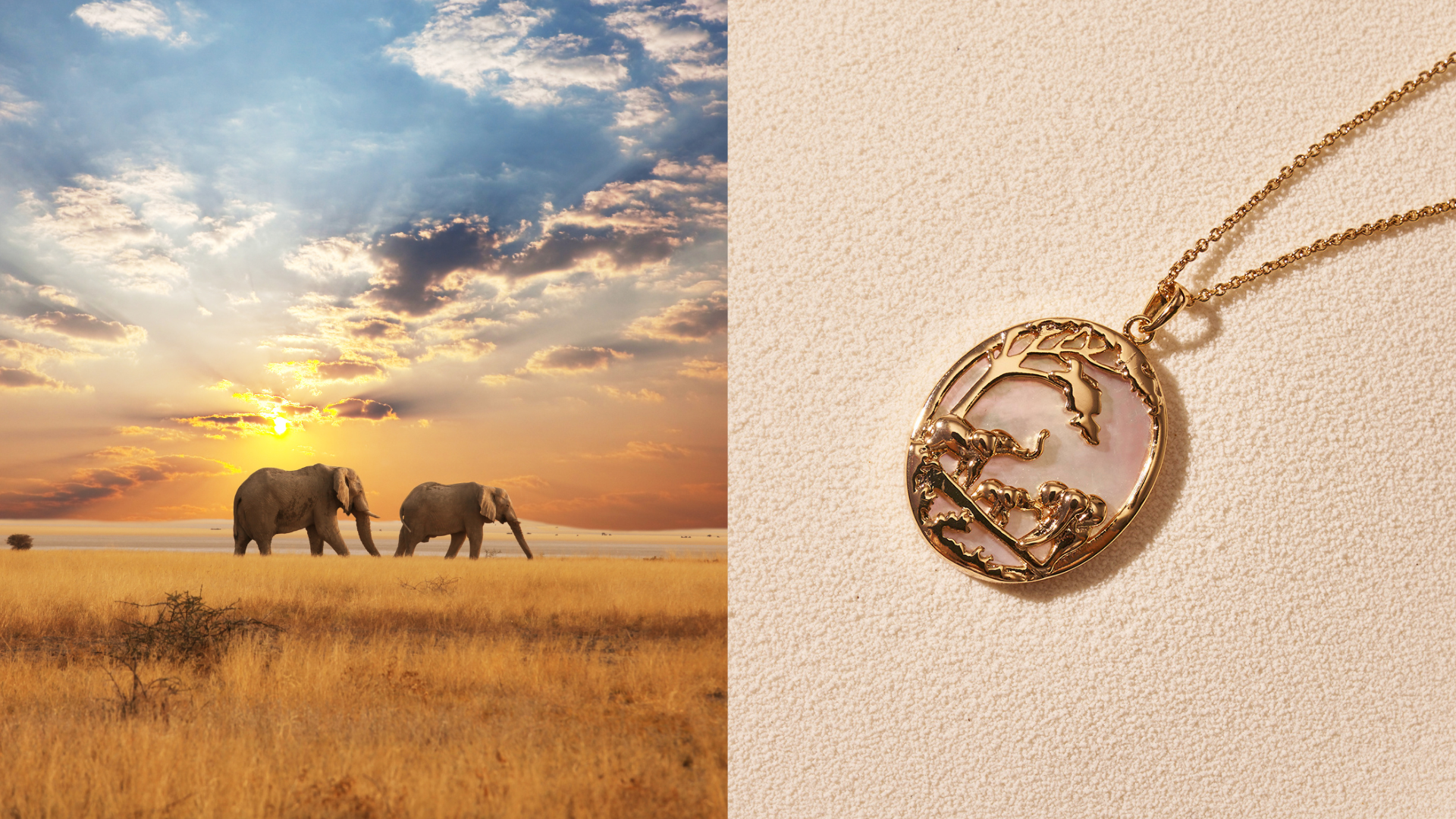 長頸鹿優雅地跨過平原,長長的脖子優雅地搖擺著。一群大象。這些宏偉的生物儘管體型龐大,但其動作卻異常優雅。看著它們彼此互動。感受到與大自然的深厚連結以及對居住在這片土地上的動物的深深尊重。這些都是非洲大陸呈現的映象, 也是生命之樹珠寶系列設計靈感的來源。