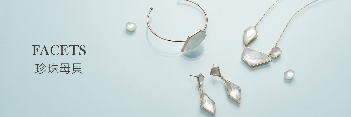 特殊的立體切面的水晶玻璃鑲讓半寶石及珍珠母貝閃爍出珠寶級的閃爍光芒。別緻的半寶石設計師款。市面上少見的運用多種工藝的FACETS系列。 讓古老的晶石展現出現代時尚的新面貌。