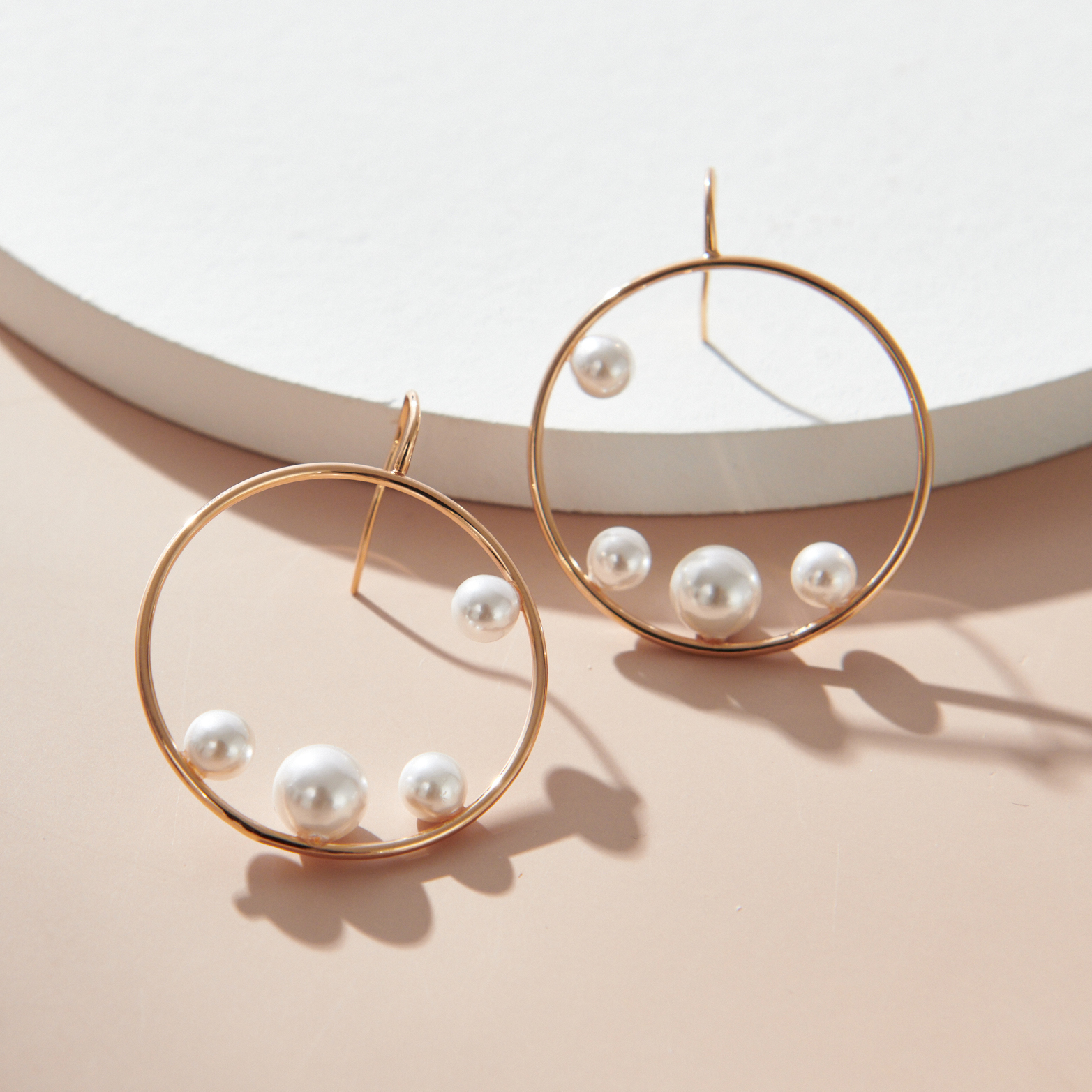 ⭐在細緻的金屬圈中點綴大小不一的珍珠 創道出不同的層次美